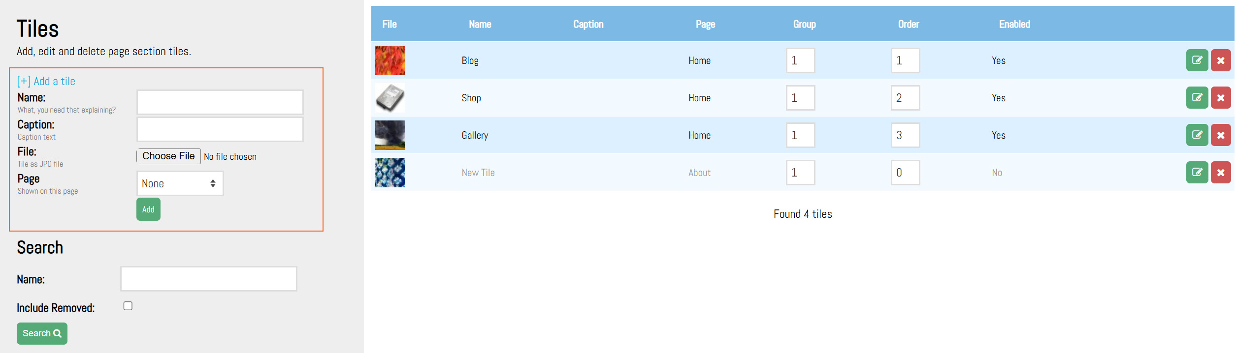 The enable column allows for the pages to be shown or hidden on the website. It allows pages to be quickly archived and brought back if needed.