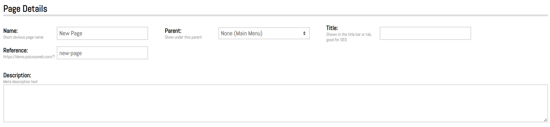 The reference is the portion of text at the end of your website url in the address bar. This can be modified to be SEO friendly. The default uses the page name when the page is created. If the page name is changed, the reference does not change. If the reference is changed, be sure to update any links that are linking to that page as this will break the link using the old reference.Description