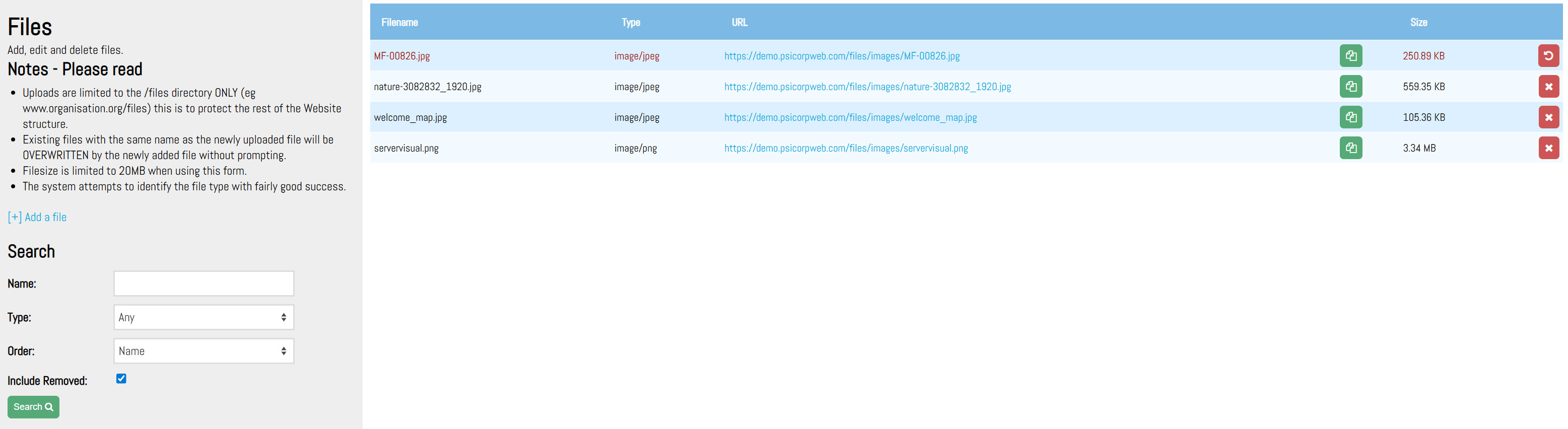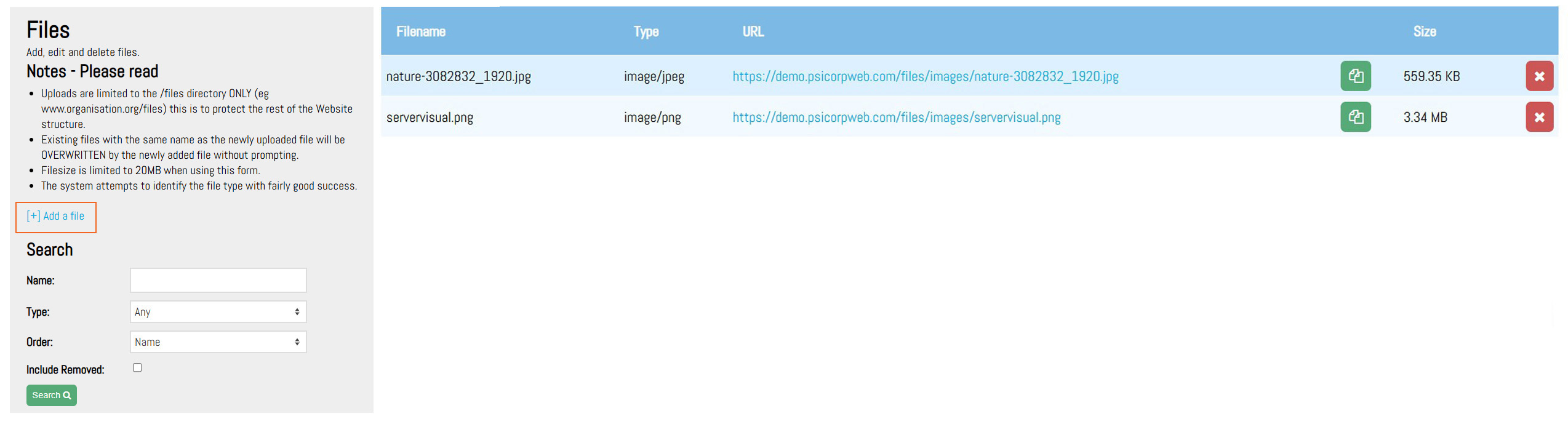 Files allows users to add or manage files used on the website.Video and PDF Download