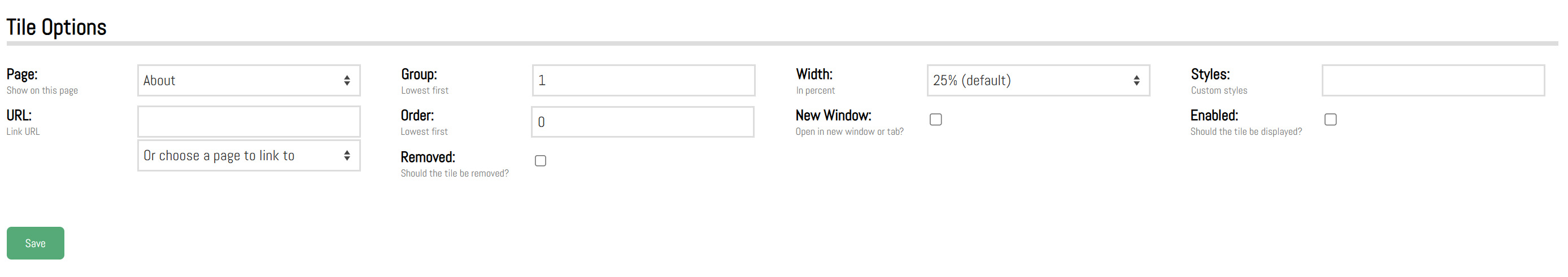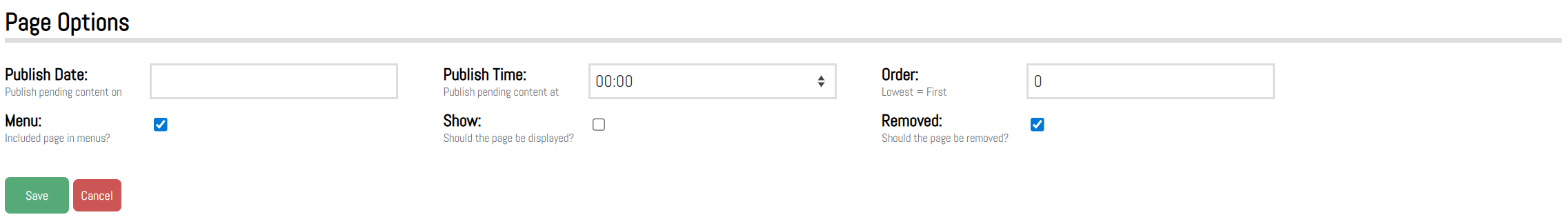 The show checkbox allows the page to be enabled or disabled (archived).Save Button