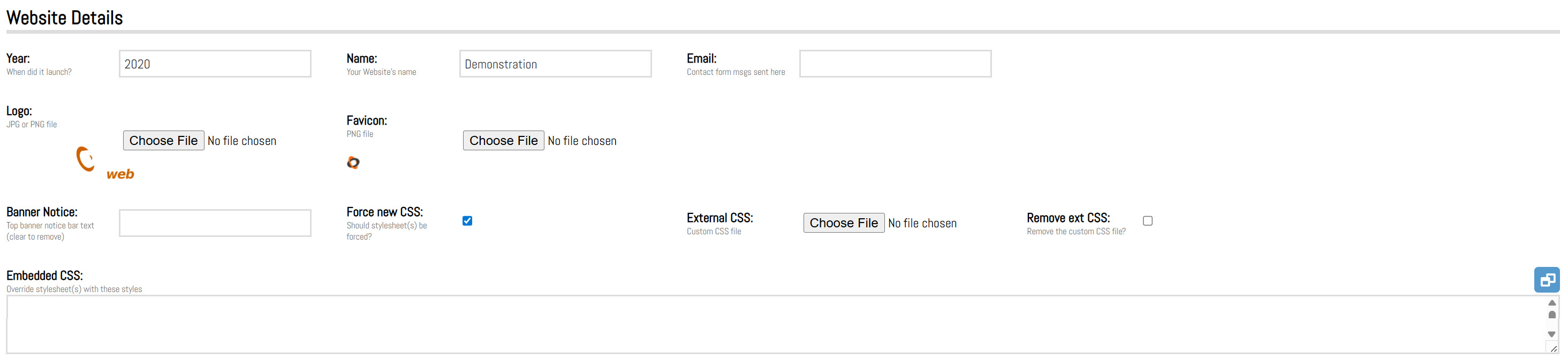 Settings allows users to make general website setting changes as well as add custom CSS.Users can also add analytics and tracking code.