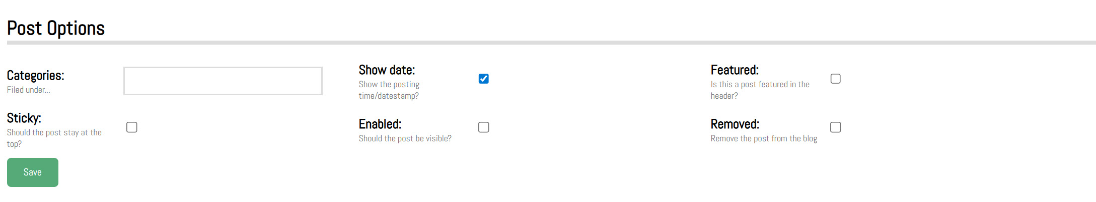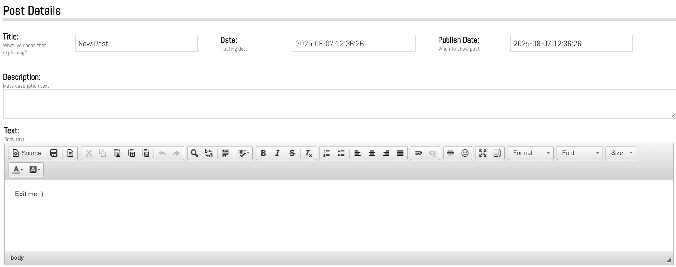 is where the body content of the post goes. This can be plain text or HTML. Click on source to edit in HTML.Post Options